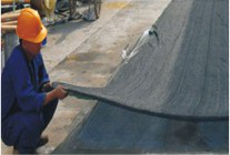 抬鋪法: 把已剪好的卷材反鋪于基面上(即是底部隔離紙朝上),待剝?nèi)ゾ聿娜扛綦x紙后,再將水泥素漿刮涂在卷材粘結(jié)面和基面待鋪位置,然后分別由兩人從卷材的兩端配合抬起,翻轉(zhuǎn)和鋪貼在待鋪位置上。卷材與相鄰卷材之間為平行搭接,待長(zhǎng)、短邊搭接施工時(shí)再揭除上下卷材搭接隔離膜。